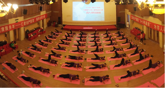 孕妇瑜伽能增加肌肉的韧性、灵活度和耐力,有利于帮助准妈妈顺产。为此,仁爱医院孕妇学校两年前开设的孕妇瑜伽课程,深受学员欢迎。为了倡导自然分娩、降低剖宫产率,让更多准妈妈勇敢选择顺产,医院举办了此次百人孕妇瑜伽活动。